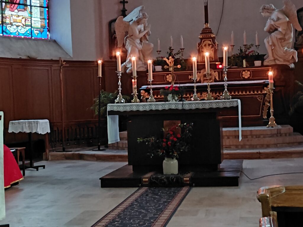 La cérémonie, légèrement modifiée dans son rituel, a commencé par un recueillement devant le monument aux morts vers 16h, puis s’est poursuivi par la célébration religieuse dans une église éclairée aux bougies.