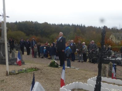 Après cet hommage, la cérémonie s’est tenue au monument aux morts. Après la lecture du message du Président de la République par le maire, un hommage a été rendu aux soldats morts pour la France, une gerbe a été déposée au pied du monument et les enfants de l’école avec leurs institutrices ont entonné la Marseillaise, accompagnés par l’assemblée présente.
