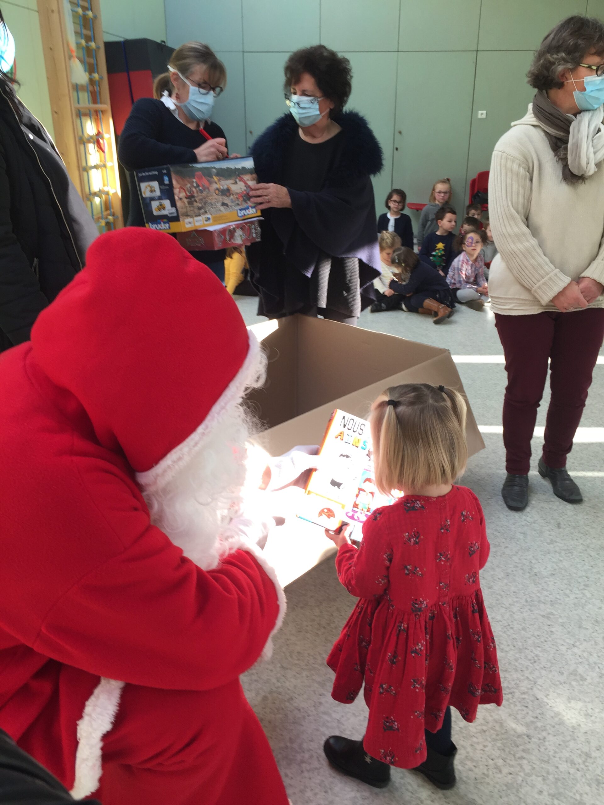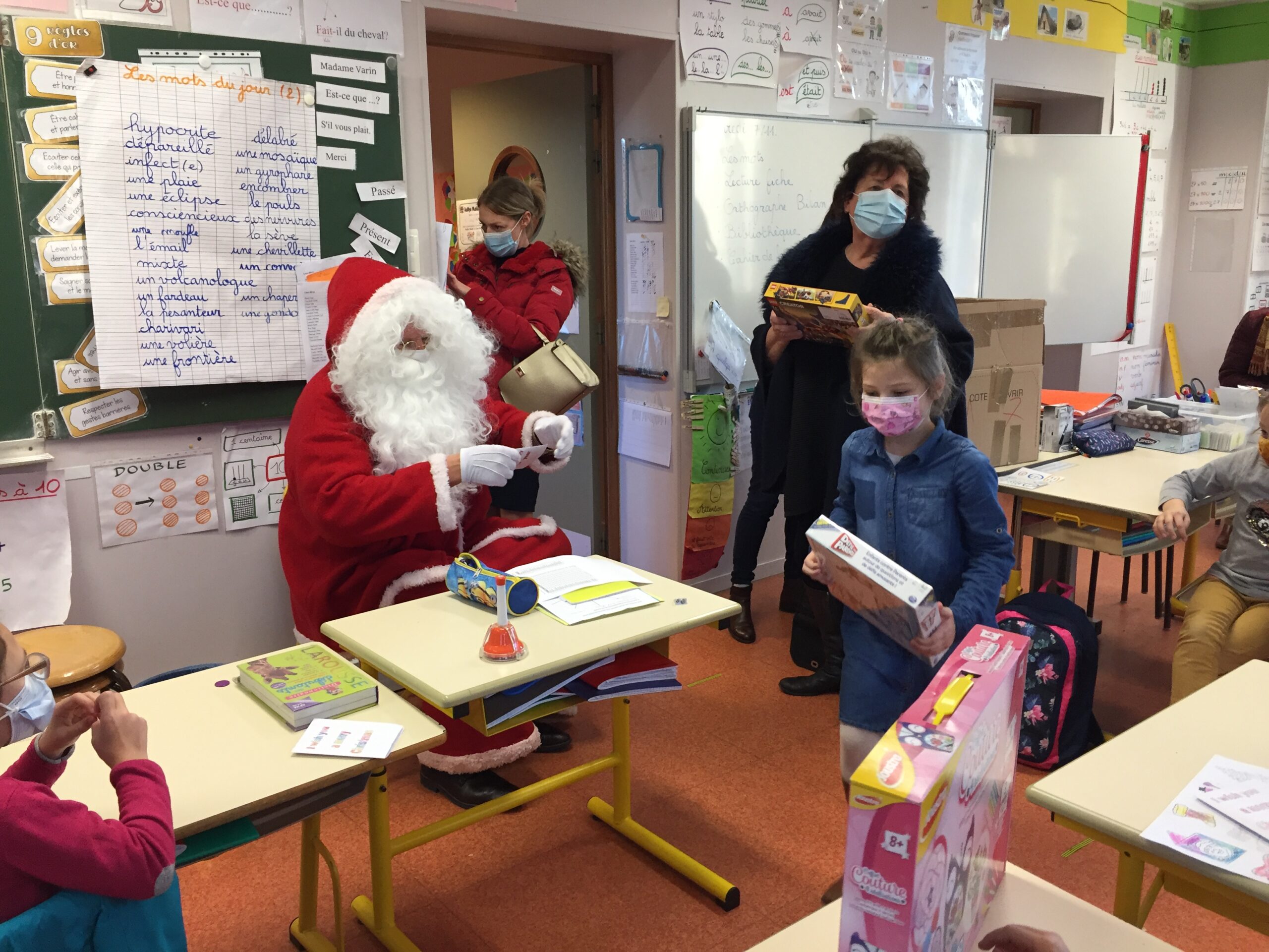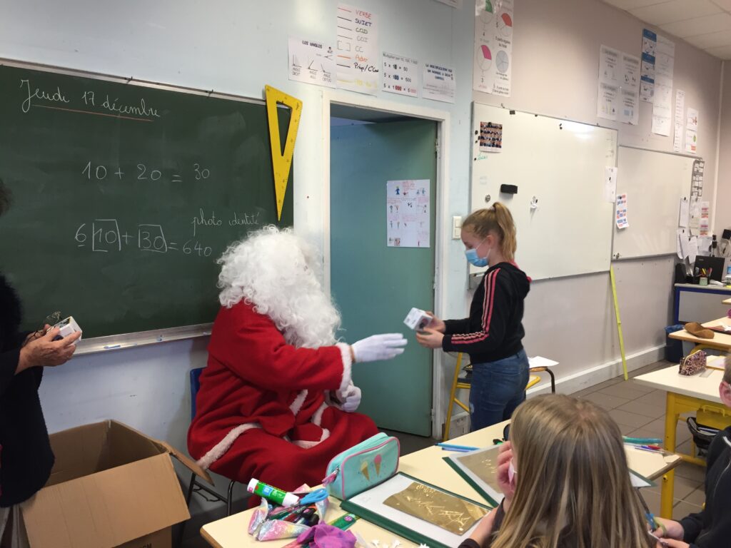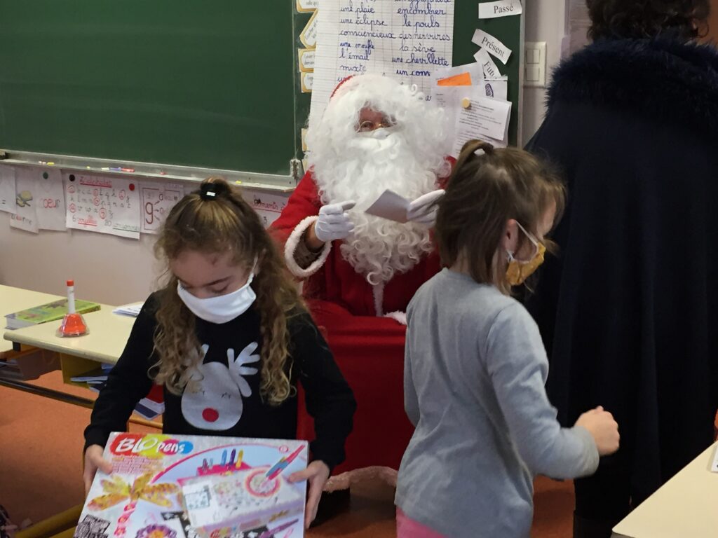 Compte tenu de la crise sanitaire, le spectacle de Noël n’a pas pu avoir lieu… Mais le père Noël, masqué sous sa barbe, a franchi les grilles du groupe scolaire Charles de Gaulle pour distribuer les jouets offerts par la commune, aidés par quelques conseillers municipaux.