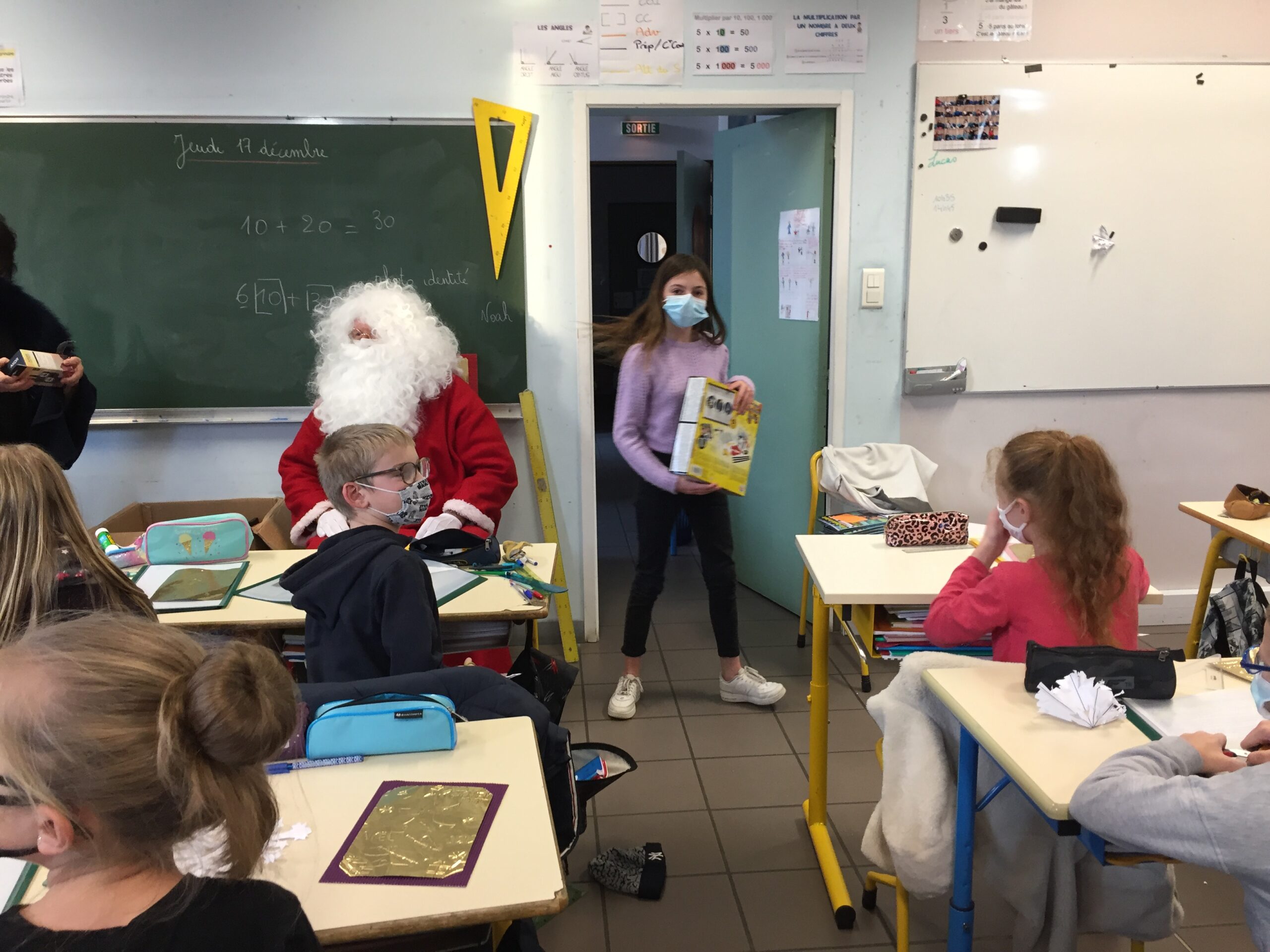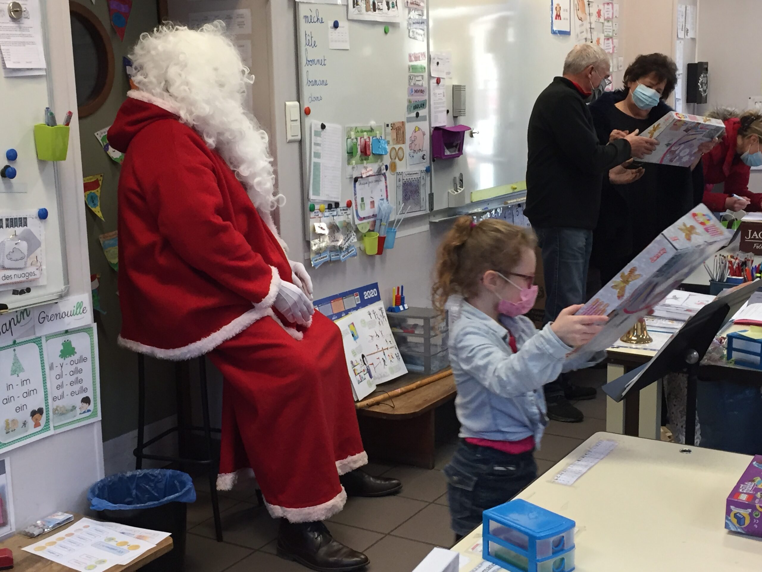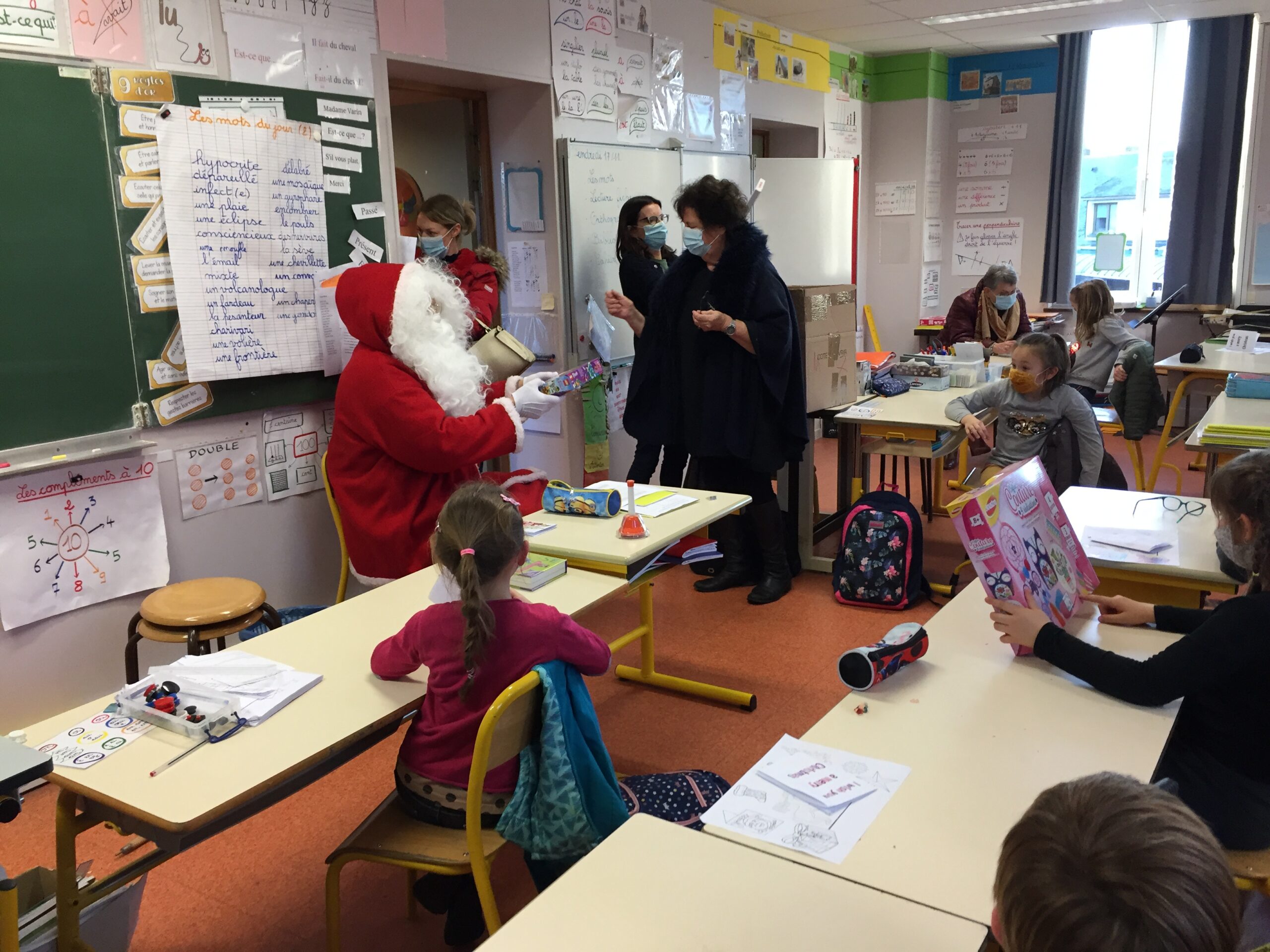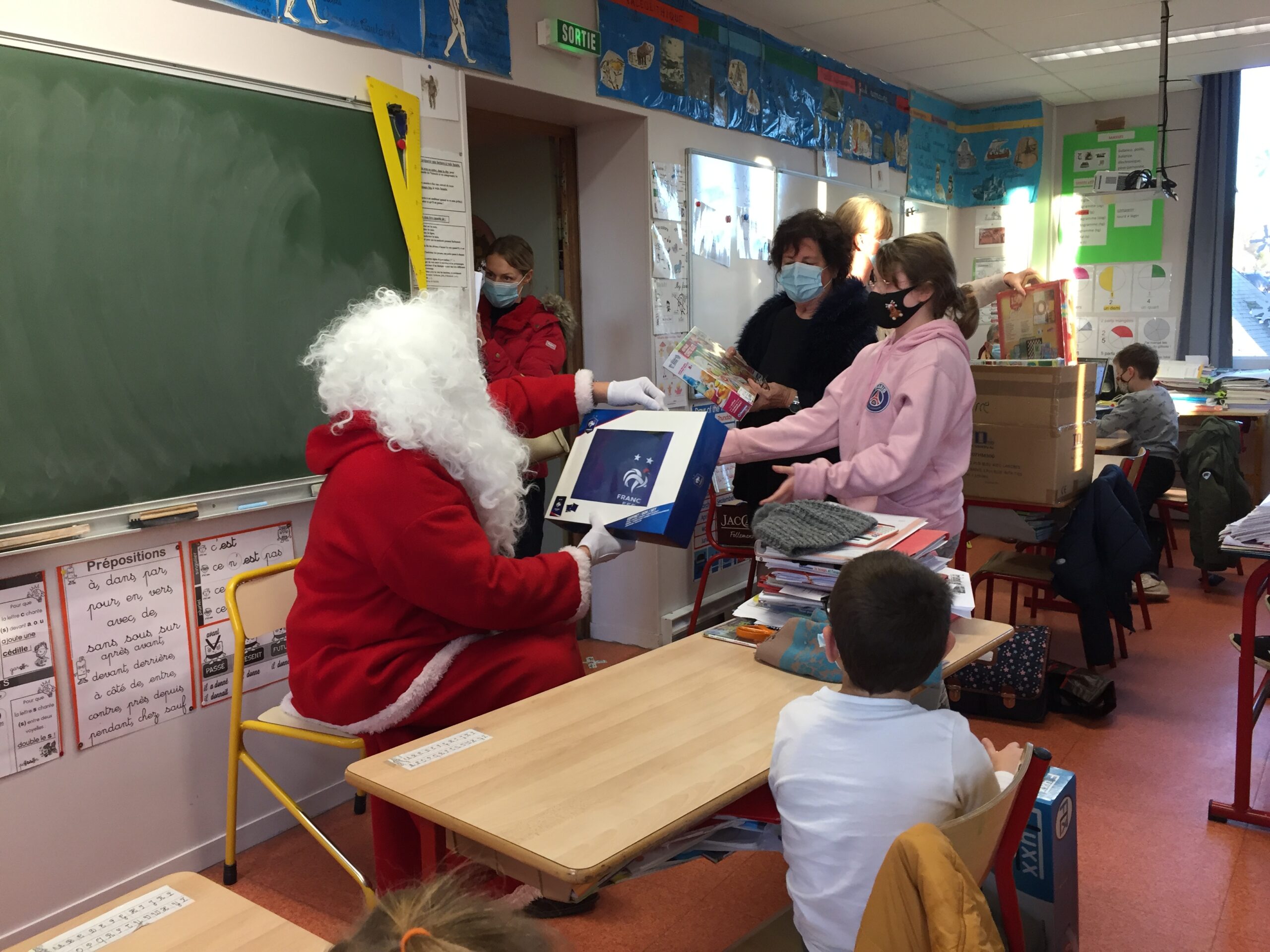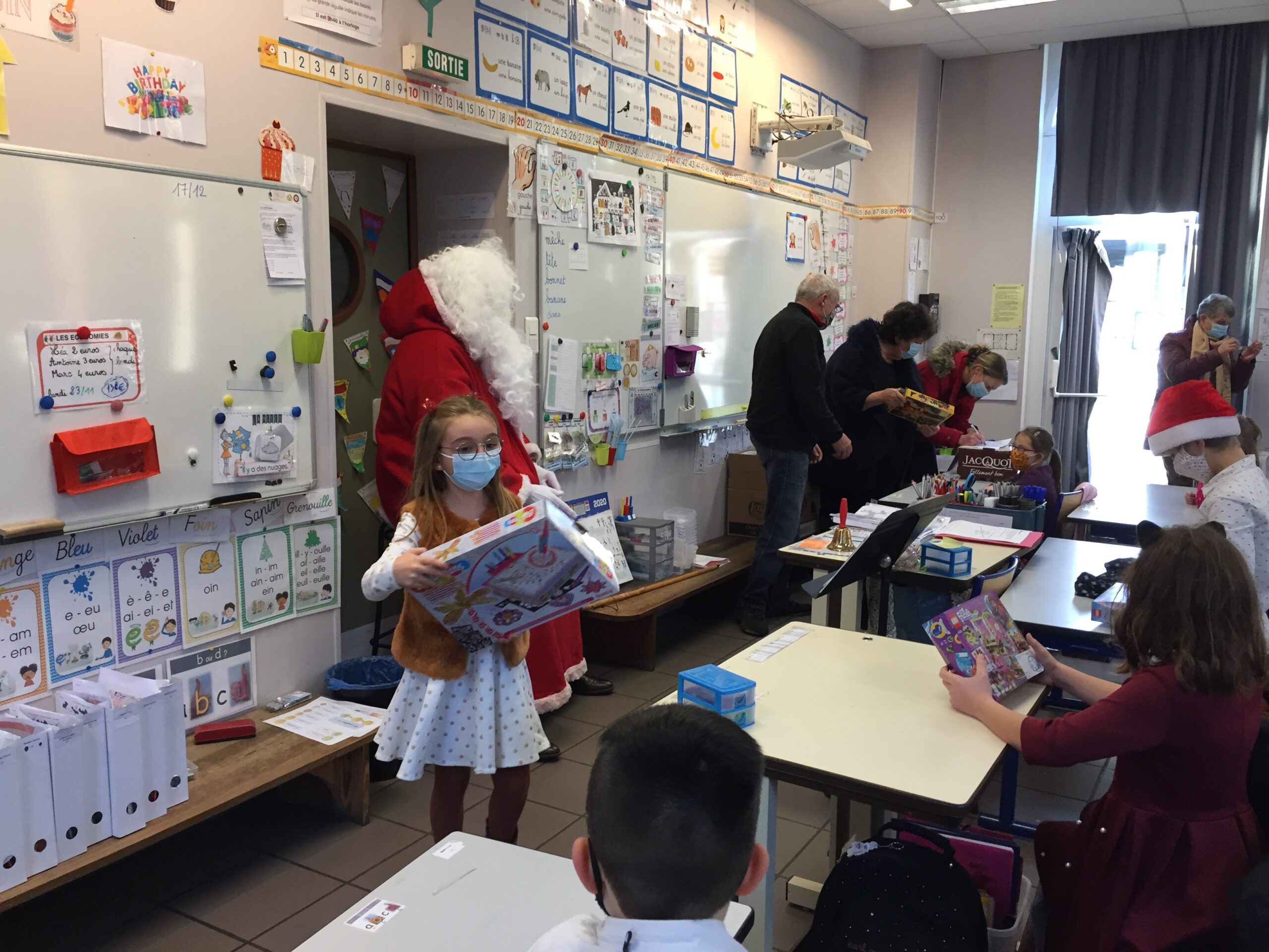 L’après-midi, le père Noël s’est rendu dans les classes de primaire pour distribuer les jouets