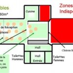 (Pour une bonne condition de travail des serveuses, le confort des invités, il faut compter environ 170-180 cm entre chaque table, il faut prévoir 50 cm d’emplacement pour une chaise).